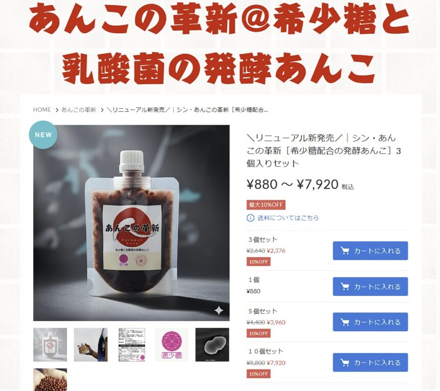 ただいま、この瞬間より、「あんこの革新」公式ネットショップでの販売を、開始いたしました!
